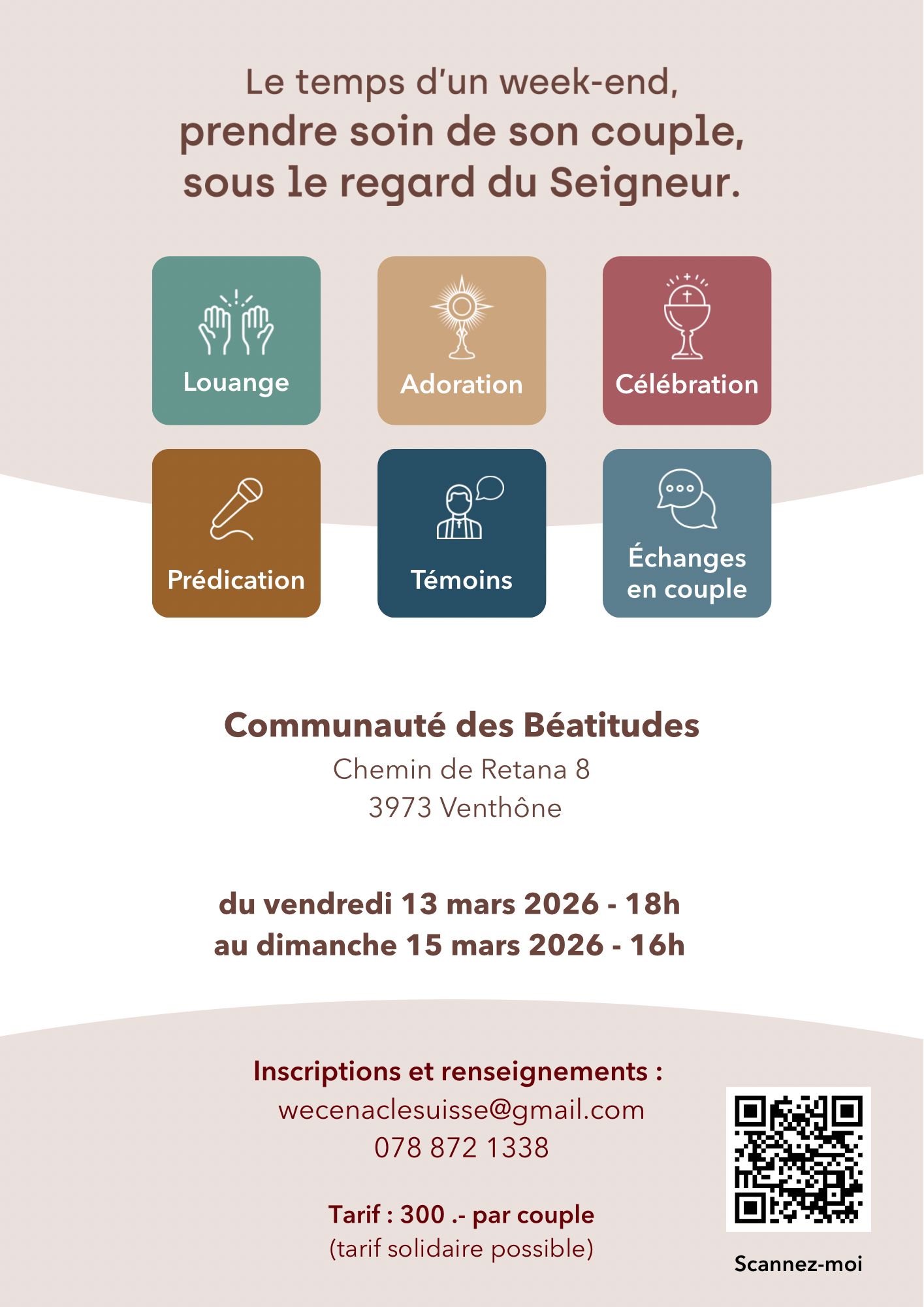 Du vendredi 13 au dimanche 15 mars 2026 à Venthône (au foyer Saint-Joseph de la communauté des Béatitudes)